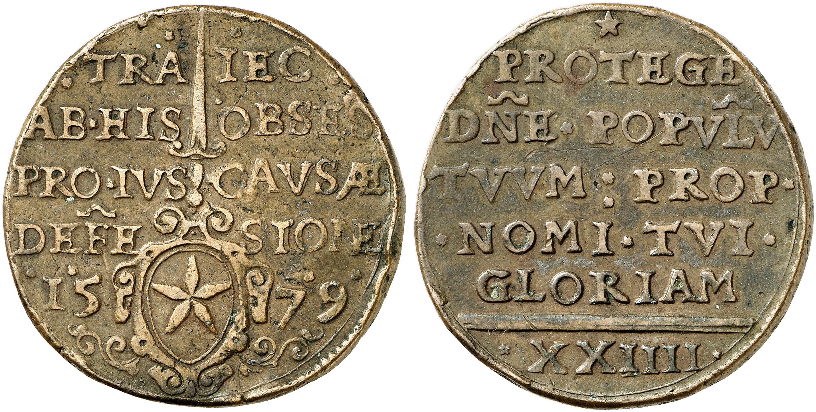 The half Robustus thaler is more frequent. A total of 288,145 were issued. As these coins were being minted, Alexander Farnese was already sieging the town.