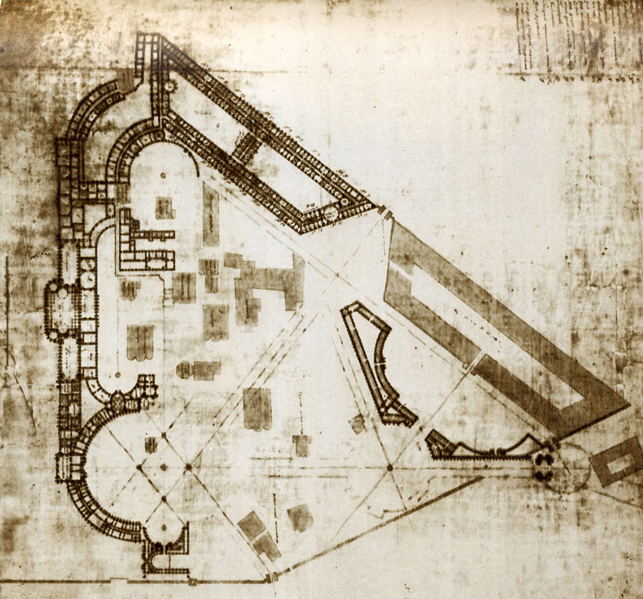 Resurrecting the center of the old Russia in renewed splendor must have seemed the ideal project for Catherine to express her Russian conviction. Thus, she made her first plans for the restructuring of the Kremlin shortly after her coronation. As responsible architect, she appointed Vasily Ivanovich Bazhenov, a Moscow citizen who had studied abroad and was to become the most important neoclassical Russian architect. His first draft is dated 1767. His latest model, which was supposed to be the basis for the restructuring, would have turned the Kremlin into the largest neoclassical complex in all of Europe. Only the three cathedrals would have remained intact. The demolition work had already begun, when in 1771 the plague broke out in Moscow and an angry mob attacked the Kremlin. Bazhenov himself is said to have stood protectively in front of his model palace, which by then had cost about 60,000 rubles.