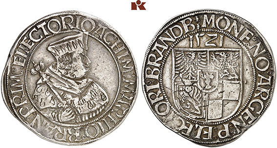 We are back in 1521: Luther stands in Worms and can do no other. Cortés brings down the Aztec Empire, Magellan dies during the first circumnavigation of the world. And the power-conscious elector of Brandenburg mints the first talers of Brandenburg history. Exactly 500 years after it was minted, auction house Künker offers one specimen of the extremely rare talers on 23 March 2021. We tell its story.