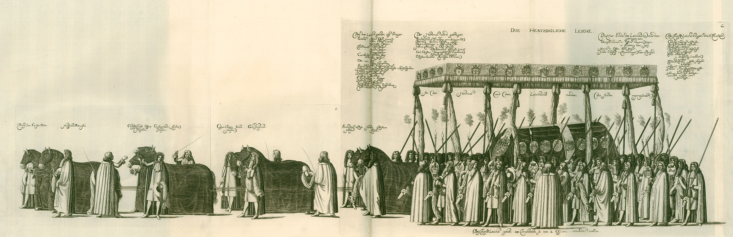 The mastermind behind the funeral ceremony was the advisory council and librarian Gottfried Wilhelm Leibniz who is rather known as a philosopher today. He designed the complex iconographic programme and the ceremony for the funeral procession. To make sure the effect wasn’t limited to the envoys present at the funeral, Ernest Augustus had an illustrated book published five years after the funeral, which chronicled every little detail of the ceremony. The illustrated book - which also contained all funeral orations and the biography of the deceased written by Gottfried Wilhelm Leibniz - could be sent as a gift to important princely courts.