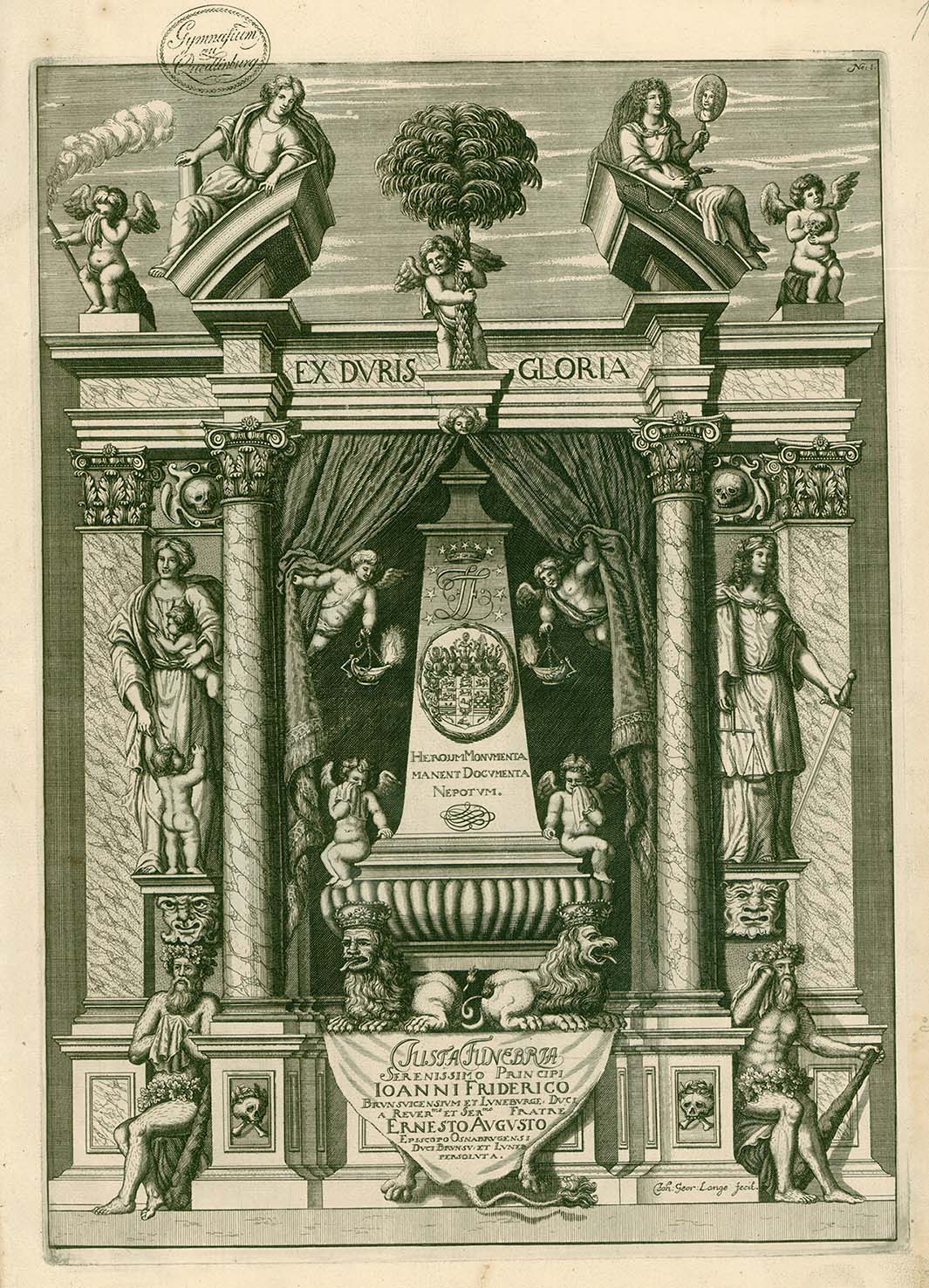 It is in this context that we have to understand the magnificent funeral ceremony that Ernest Augustus organised for his brother. John Frederick had already died on 28 December 1679, but his bones were not buried in the princely crypt of Hannover until 21 April 1680. Part of this ceremony was a highly interesting Brunswick löser.
