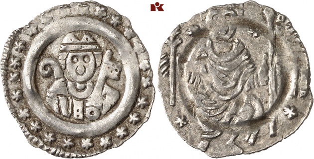 And being bishop of Regensburg was a very powerful position. How powerful becomes clear when looking at the man responsible for the coin type “Emmerig 173”: Conrad IV, Bishop of Regensburg between 1204 and 1226, was chancellor of the anti-king Philip of Swabia. Frederick II bought Conrad’s support by confirming his unrestricted rule over the city of Regensburg.