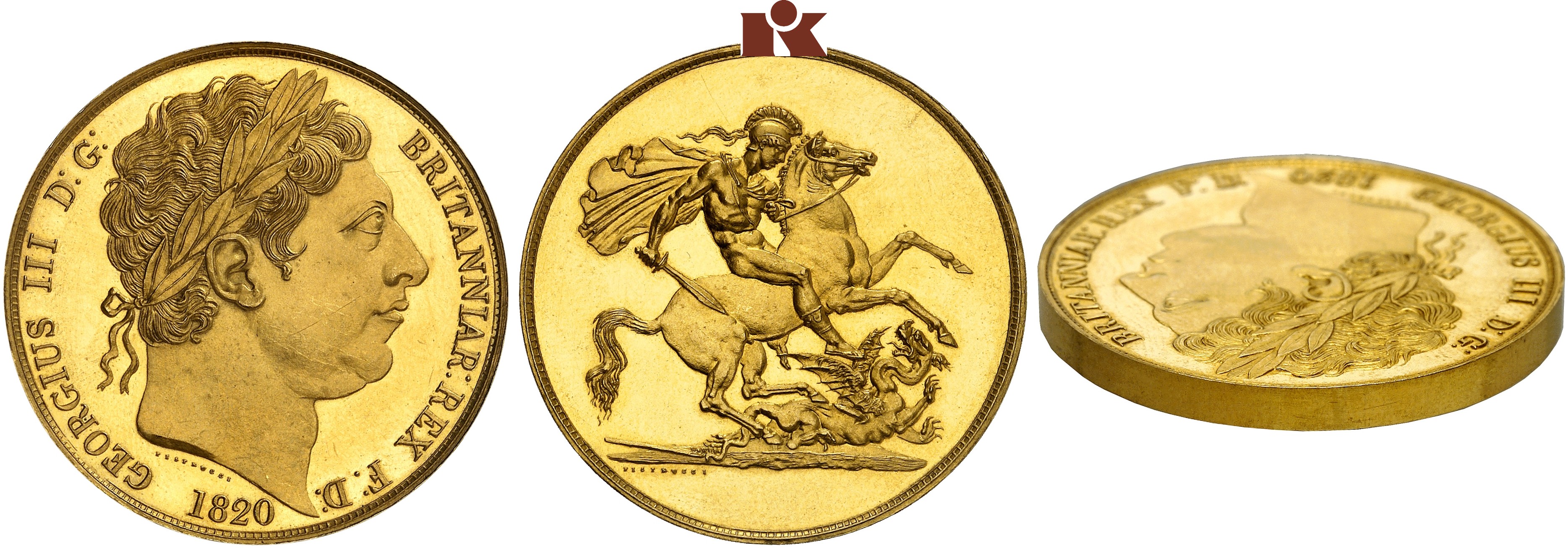 The market for British coins is booming, and this pattern combines several advantages. It is one of the rarest issues of the Royal Mint – we know that only 2 specimens of these patters with plain edge were created. In addition, the name of the most popular engraver of early modern times, Benedetto Pistrucci, can be associated with the piece. His depiction of St. George is an icon of British coinage.