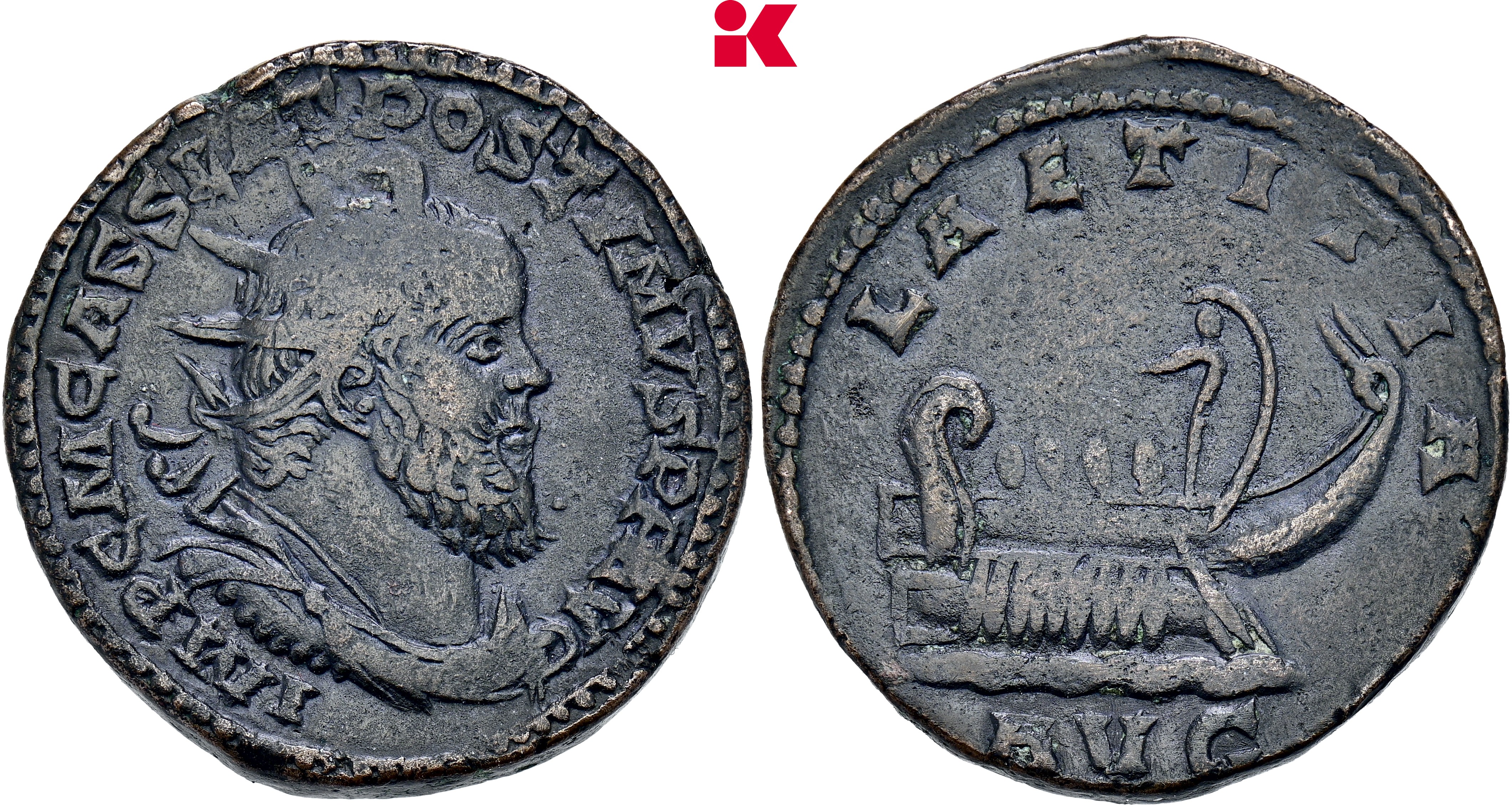 Nun richtete er seinen Amtsitz in Trier ein. Er soll die Münzstätte in Köln nicht mehr genutzt haben, was allerdings ein Unikum aus der Sammlung Zschucke widerlegt. Auf dessen Rückseite lesen wir die Münzstättensigle CA. Anscheinend blieb die Kölner Münzstätte unter Tetricus aktiv. Tetricus war ein Verwaltungsfachmann, kein Soldat. Sein Heer unterlag bei Catalaunum (Châlons-sur-Marne resp. Châlons-en-Champagne) dem neuen Kaiser Aurelianus, der auf Claudius Gothicus gefolgt war. Aurelianus war ein anderes Kaliber als seine Vorgänger. Ihm gelang es, das römische Imperium wieder in einer Hand zu vereinen.