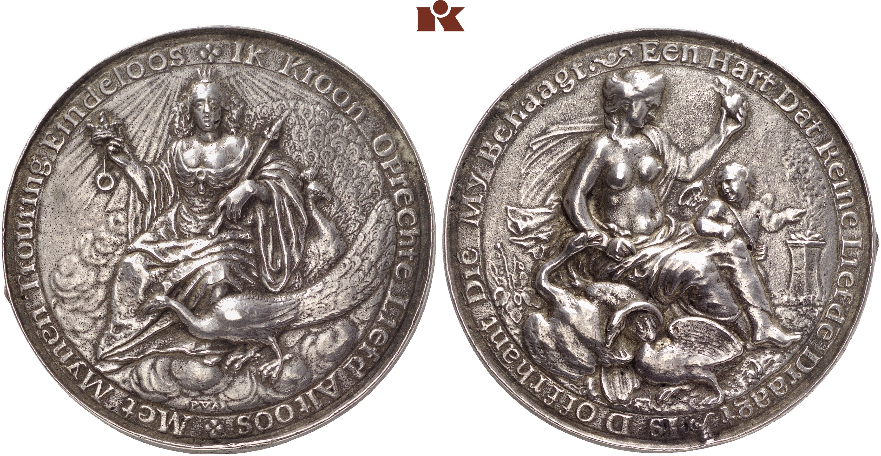 So hatte die Medailleurskunst in den Niederlanden also bereits eine weit zurückreichende Tradition, als im so genannten Goldenen Zeitalter die Medaillenherstellung ihre Blüte erlebte. Das Können niederländischer Stempelschneider ist immer wieder beeindruckend. Und so gehören niederländische Medaillen zum Schönsten, was man sammeln kann!