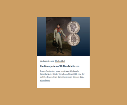 Am 27. September 2022 haben wir den ersten Teil der Sammlung der Brüder Verschoor versteigert. Er enthielt eine der bedeutendsten Sammlungen von Münzen des Königreichs Holland. Lesen Sie vom Schicksal des kurzlebigen Königreichs und den zahlreichen Problemen, mit denen König Lodewijk bei der Einführung seiner neuen Münzen zu kämpfen hatte.