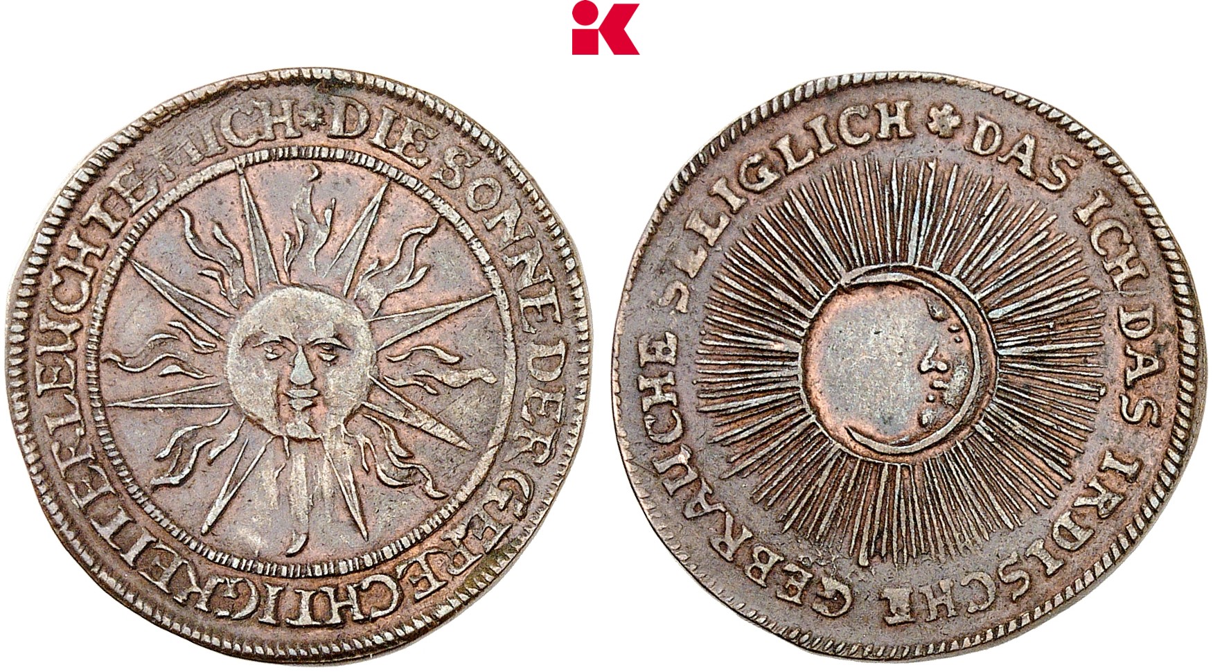 Dies soll hier an einigen Beispielen belegt werden: Einer der besten Stempelschneider im Barock war der in Gotha lebende Christian Wermuth. Sein Motiv einer Medaille mit Sonne und Mond (Los 4515) griffen die Maler in den Räumlichkeiten des Westflügels von Schloss Friedenstein auf. Sie zeigten hier das kleine Licht des Mondes (ein Bezug auf Herzog Emil August) an der Decke des Zimmers eng verbunden mit der Sonne (als Bezug zu dem gottgleichen Napoleon Bonaparte, den er grenzenlos verehrte).