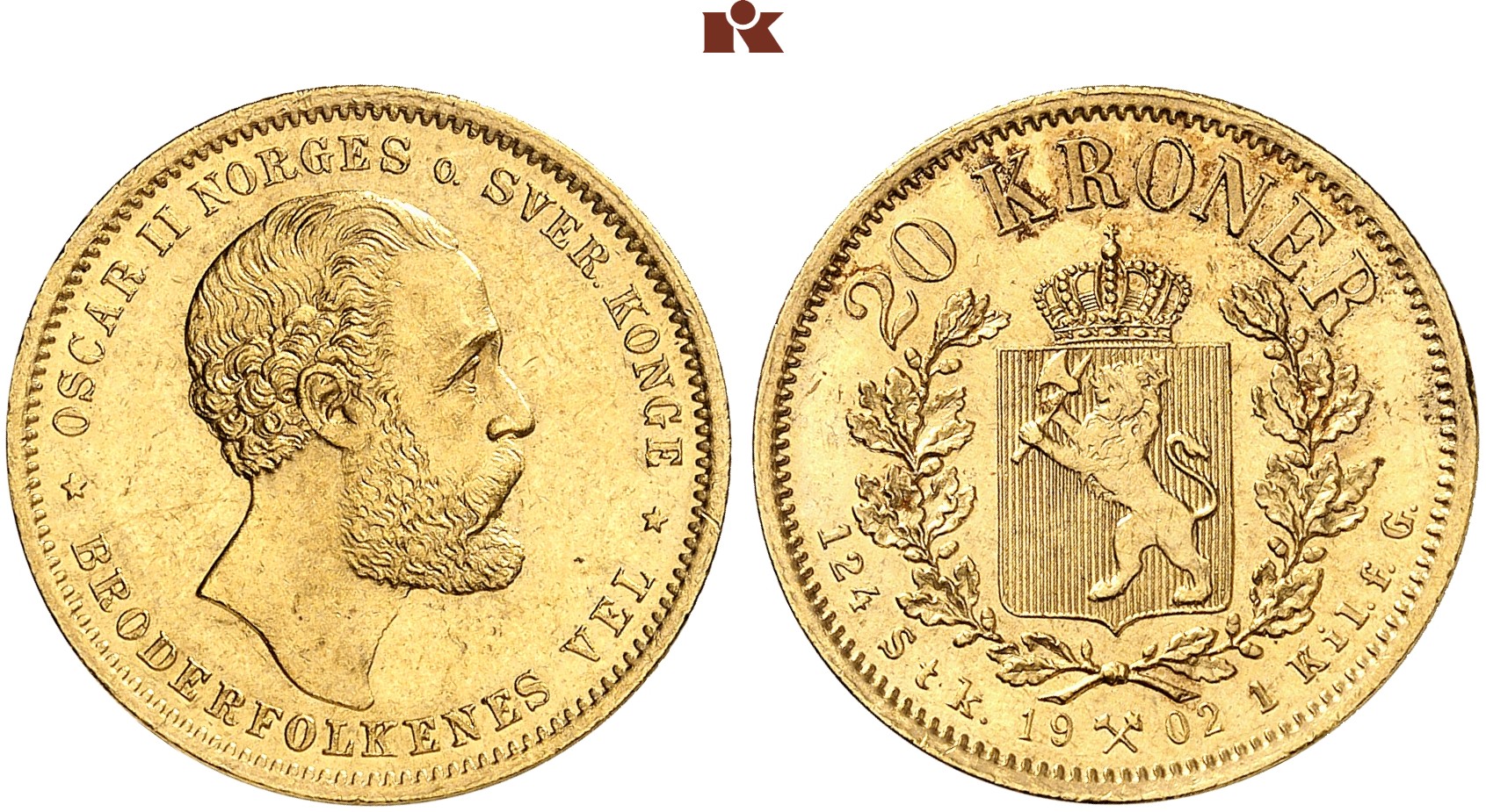 KÖNIGREICH Oskar II., 1872-1905. 20 Kronen 1902, Kongsberg.