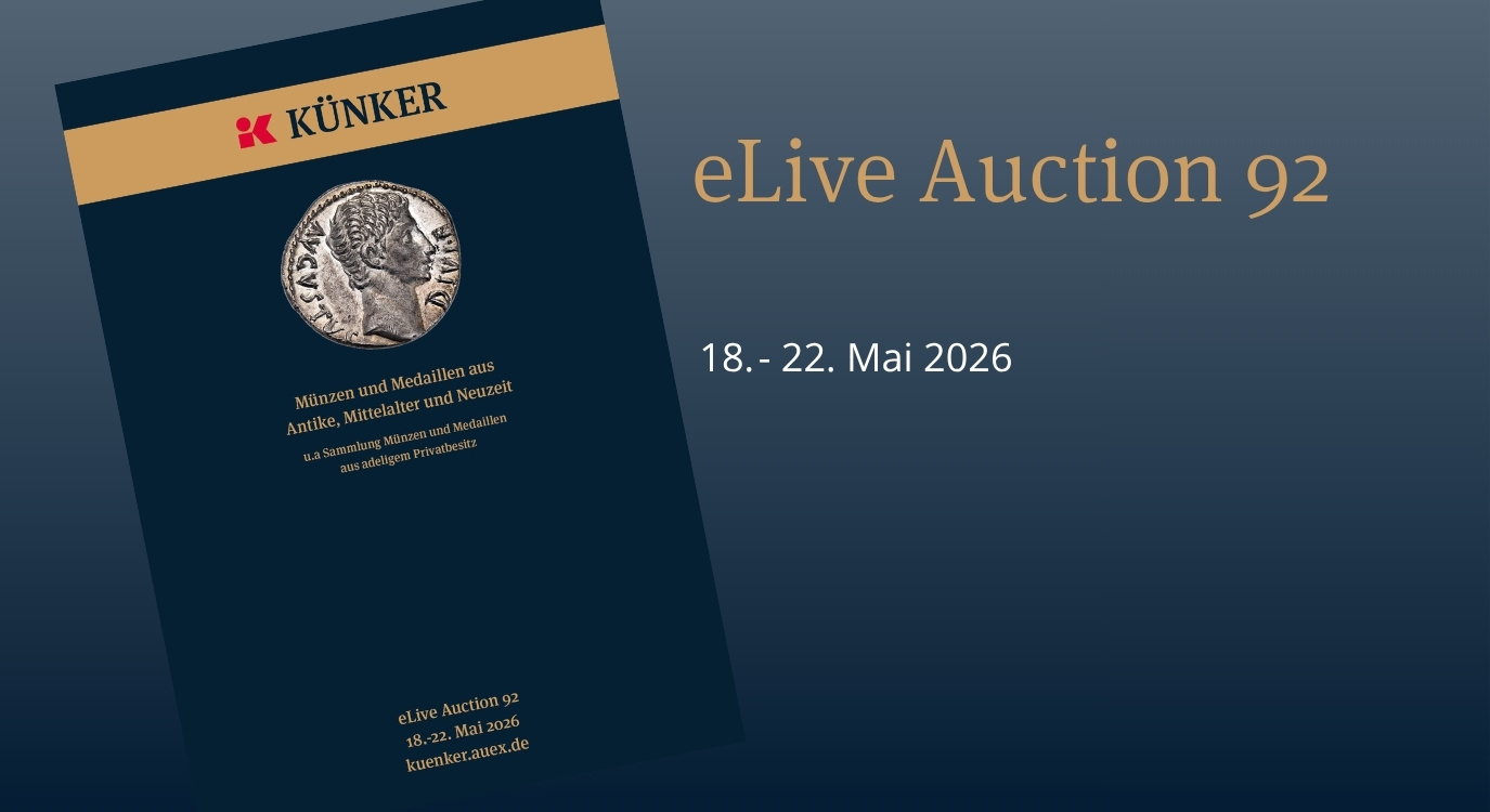 Unsere eLive Auction 92 steht für Sie online! Freuen Sie sich auf ein breites Angebot in unserer Auktionswoche vom 18.-22. Mai 2026. Die eLive Auctions starten jeweils ab 13 Uhr auf kuenker.auex.de. Bereits jetzt können Sie Ihre Vorgebote abgeben oder an den Auktionstagen live online mitbieten.